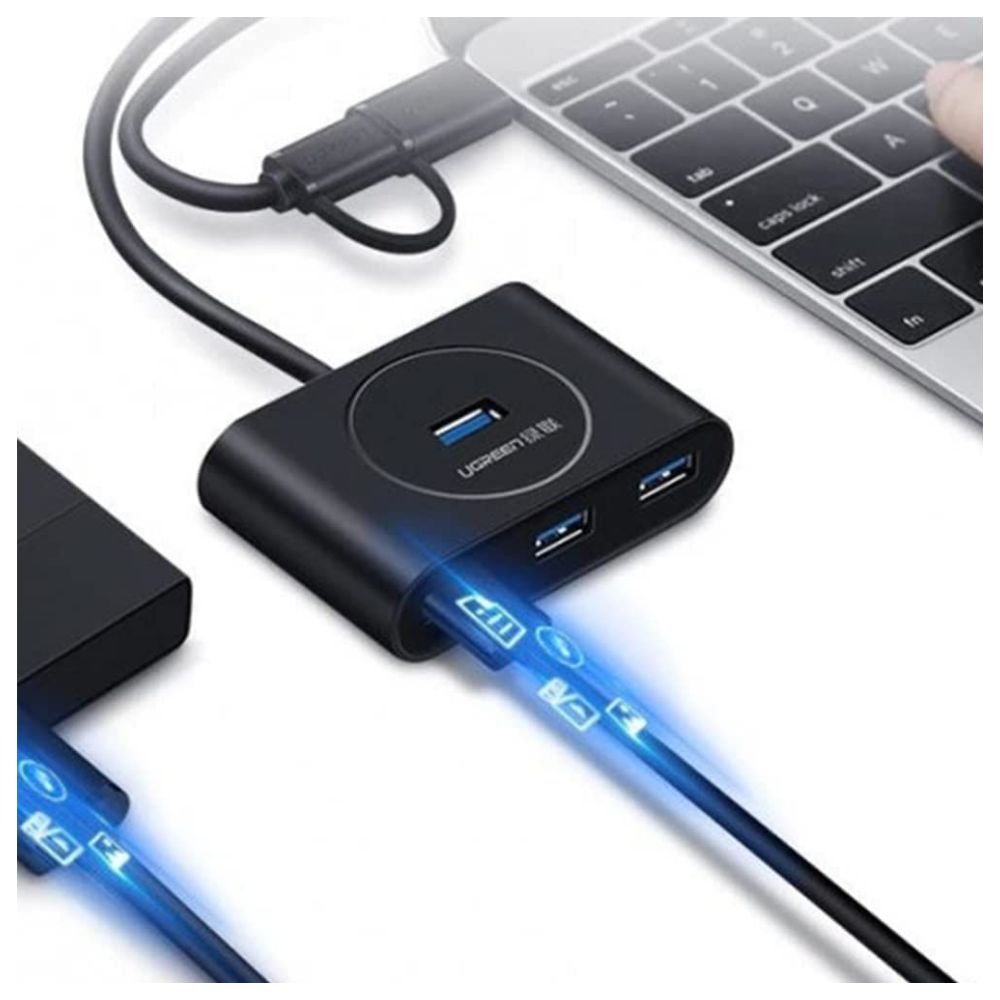 The UGREEN USB-C & USB-A 3.0 to 4-Port Hub (UG-40850) is a sleek, high-performance USB expansion accessory designed to give your laptop, desktop, tablet, or mobile device more usable ports without the clutter of adapters. Whether you’re working in a home office, powering a creative workstation, or enhancing everyday productivity, this compact hub boosts connectivity with industry-standard USB 3.0 speeds and universal compatibility.